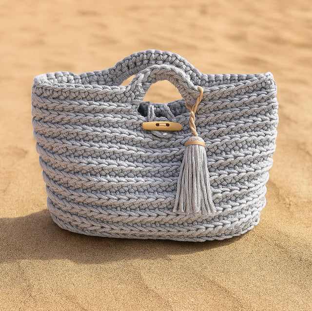 Oval Large pearl gray with 2 handles and frog closure - 27x21